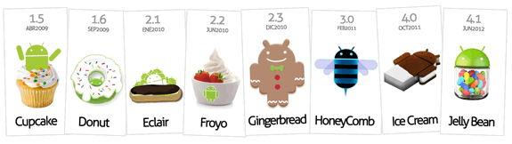 Las versiones de Android reciben el nombre de postres en inglés. En cada versión el postre elegido empieza por una letra distinta siguiendo un orden alfabético: